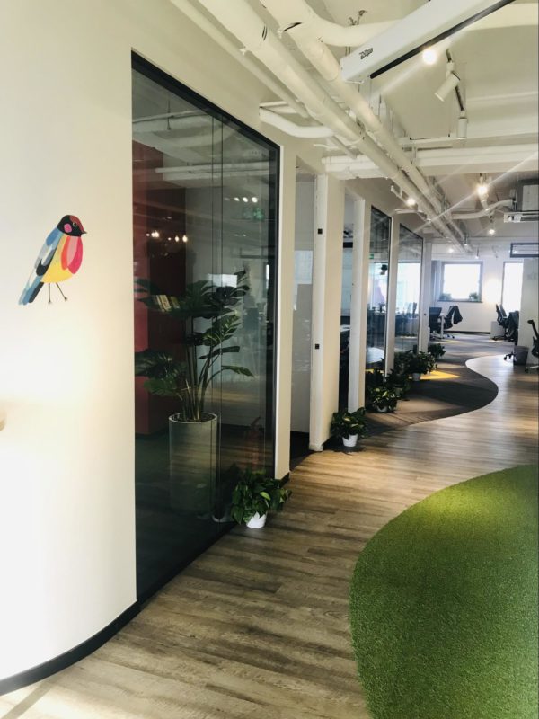 壁にかわいい鳥のイラストが入ったミーティングルームも!