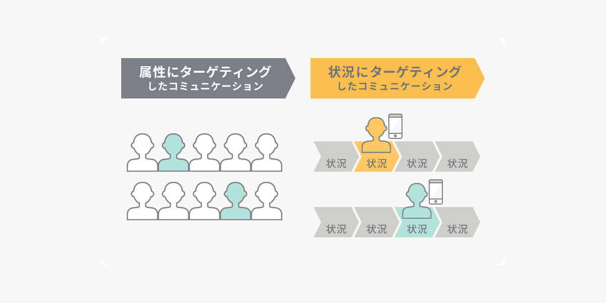 なぜかというとビービットでは、顧客の属性でも性格でもなく、置かれた「状況」こそがモーメントの性質を決めると考えているからです。例えば、企業のQ&Aサイトにアクセスするというモーメントが発生するのは、30代の女性だから問い合わせを行う訳でも、神経質だからでもなく「商品を使おうと思って操作方法を知りたい思ったが、説明書に情報が不足していた」といった「状況」がそのモーメントを引き起こしていると捉えています。そのため、同じ顧客でも状況が異なればまったく違うモーメントが発生し、違う顧客でも置かれた状況が同じであれば、類似したモーメントが発生すると考えています。
