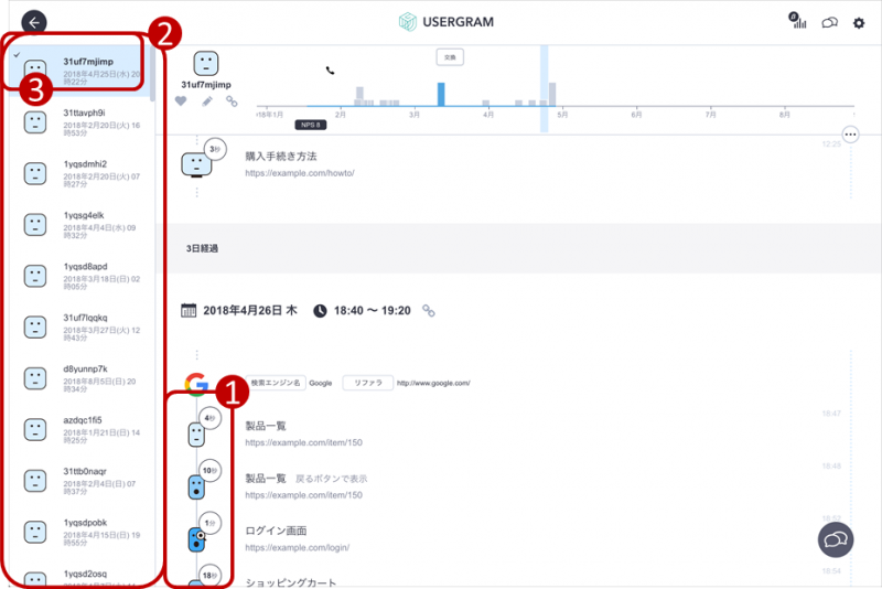 ❸すでに行動を確認したユーザはチェックマークがつくので一目瞭然!