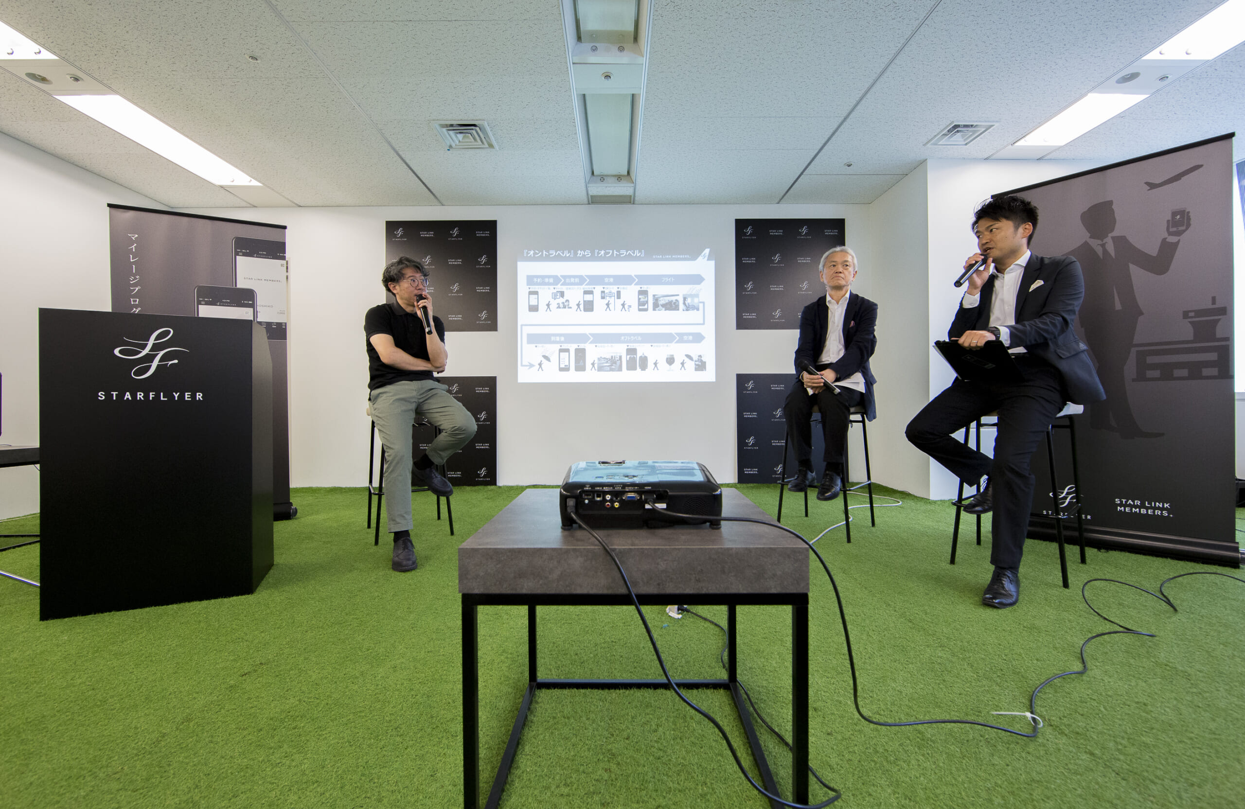 7月26日、東京八重洲でスターフライヤー様主催の記者会見が開催されました。内容は、新会員プログラムと新アプリの発表。アプリ開発をはじめとしたプロジェクトでビービットがご一緒させていただいたご縁から、弊社エバンジェリストの宮坂(写真・左)が当日のパネルセッションでモデレータを務めさせていただきました。