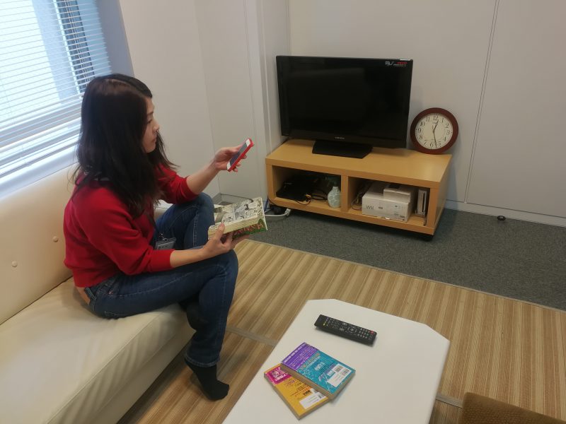 テレビやソファーやテーブルなどを設置して、部屋の中はさながら家庭のリビング。自分の家にいるようにリラックスしてもらい、実際の状況に近い行動を再現してもらうようにします。