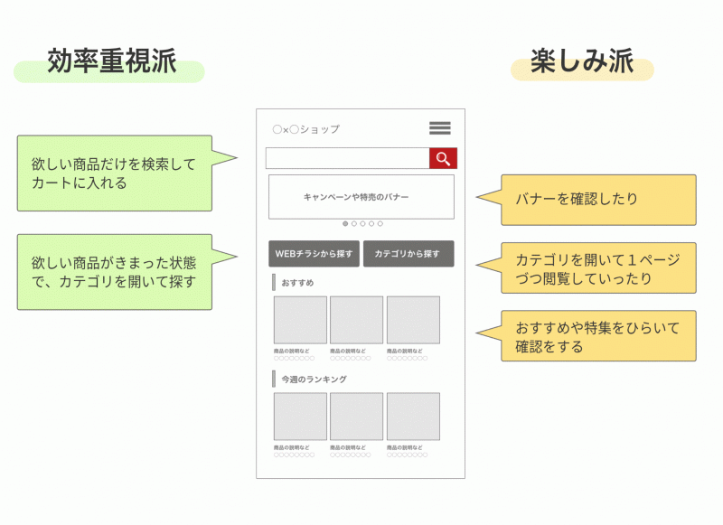 同じ人がどちらにもなり得るからこそ、どちらかだけにターゲットを絞るのではなく、どちらのモードでも気持ちよくお買い物ができるようなサイト設計をする必要がありました。