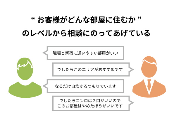 A: ”お客様がどんな部屋に住むか”のレベルから相談にのってあげている