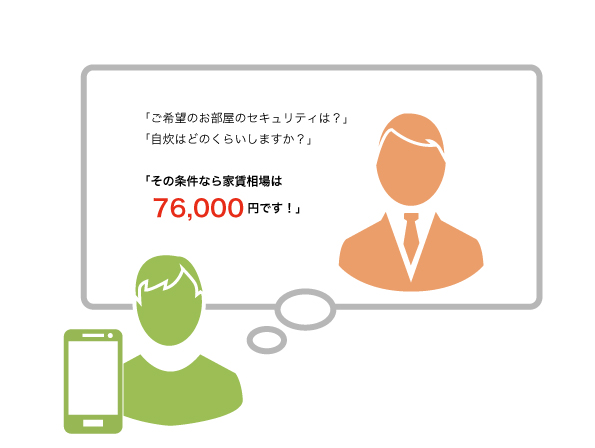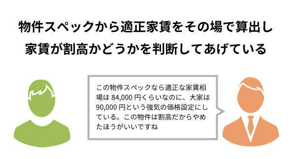 B: 物件スペックから適正家賃をその場で算出し、家賃が割高かどうかを判断してあげている