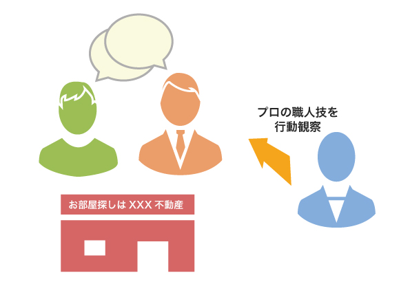 不動産仲介の現場に出向き、「営業成績の良い店舗スタッフ」の行動をじっくり観察をすると、リアル店舗では下記のような顧客体験を提供していることが分かりました。