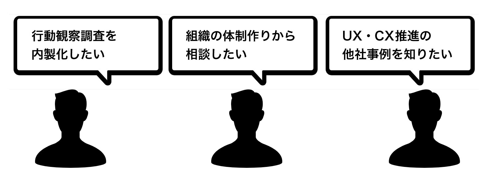 CX推進を行う上で生じる課題は複合的であることがほとんどです。貴社の予算や課題に合わせ、カスタマイズされたアドバイス・ご提案が可能ですので、ぜひ下記の問合せフォームよりご連絡ください。ユーザ調査のケイパビリティだけでなく、UX・CXを担う横断部署に関するナレッジがございますので、相談相手としてもお役立てください。