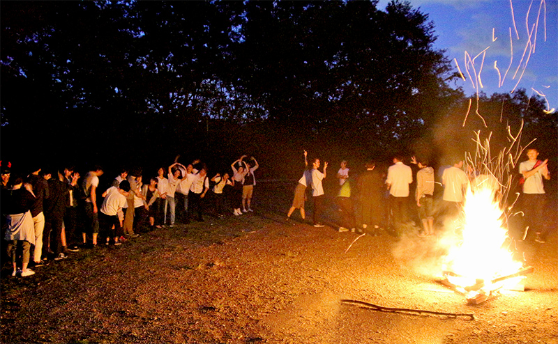 日も暮れた頃、もう終わりかと思ったら待っていたのがキャンプファイヤー!