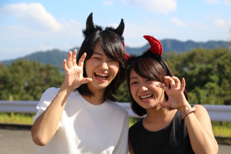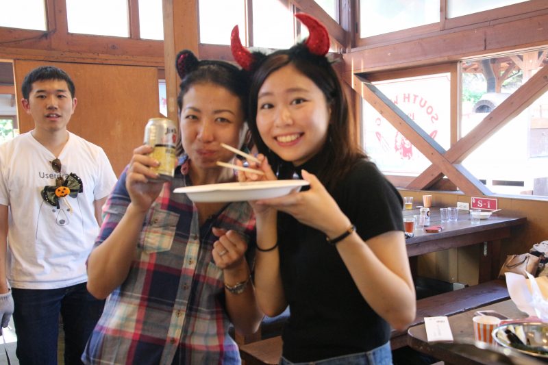バーベキュー場へ入ると、ハロウィンカチューシャがズラリ!
