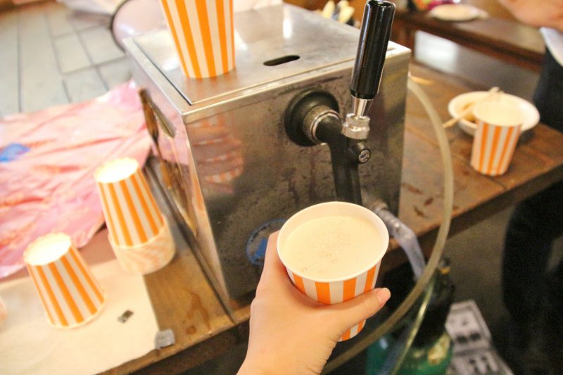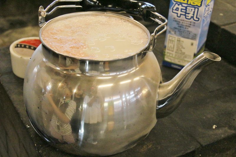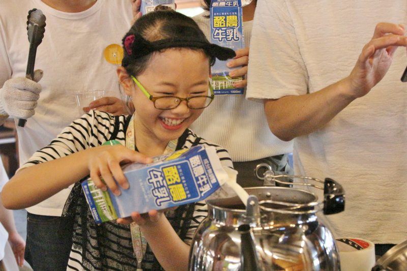 この笑顔! とっても楽しそう! 牛乳をそそいでできたのは……