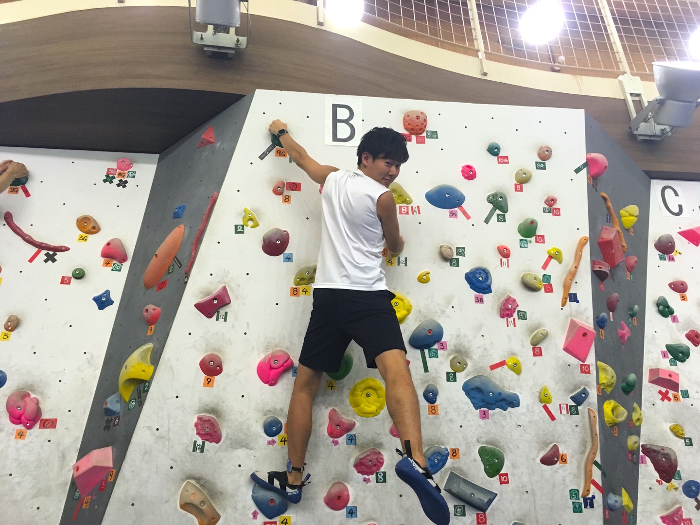 前回、社員インタビューにも登場してくれた大谷君。すーい、すーい、と一切重力を感じさせない登りっぷり。物理の法則に反している気がする…。登り方も人によって個性があって、見ているだけでとても面白いです。