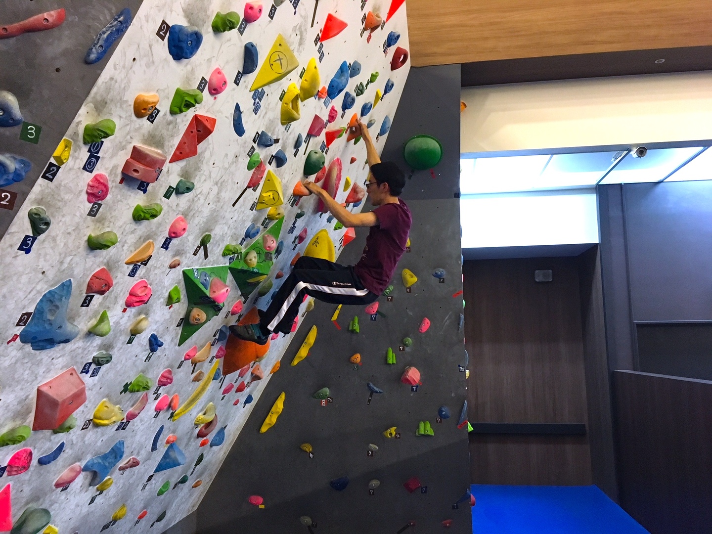 社員の中に「コンビニよりボルダリングジムの方が近い」という変わった立地に住んでいる人がいて、初心者の同僚に身体を張ってルート取りを教えてくれました。(その結果が、「腕力で頑張れ」だったりするわけですが…無茶言うなよ!)