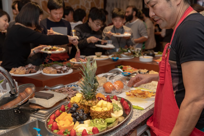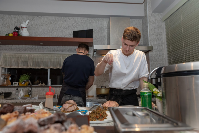 今回の食事はケータリングだったんですが、ただ運び込んで終わりではなく、シェフがキッチンで仕上げをしてくれるサービスも。しかもそのシェフがアイルランド人!