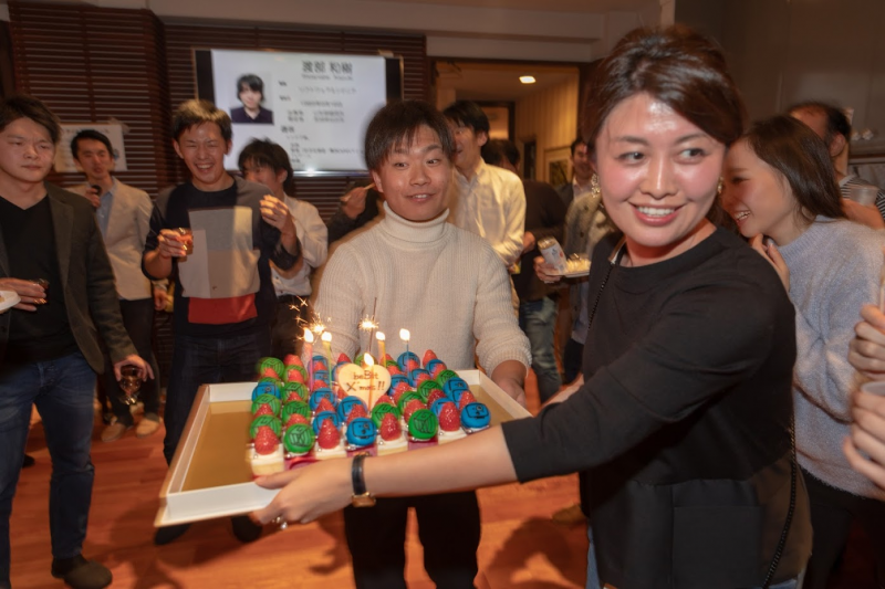 CEOとCTOで仲良くろうそくの火を吹き消します。
