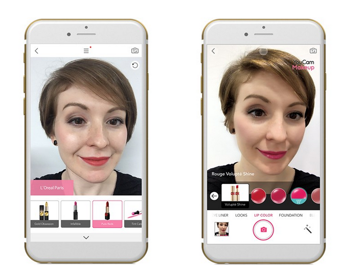 メイベリン、ロレアル、セフォラなどのコスメブランドは、バーチャル・トライオン機能の付いたスマホアプリをリリース。これらのアプリでは、ユーザーの顔写真を使って、メイクがどのように映えるのか確認することができます。