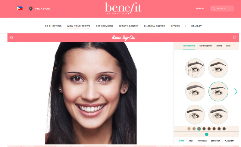 コスメブランドのBenefit Cosmeticsは2018年1月にARアプリBenefit Blow Try-Onをローンチ。アイブロウに特化したバーチャル・トライオンアプリで、ソーシャルメディアと連携しており、友達やフォロワーとのインタラクションを可能にします。このアプリをローンチして以来、同社アイブロウの商品ページのコンバージョン率は80%も増加したというのです。またサイト滞在時間は90%増えたといいます