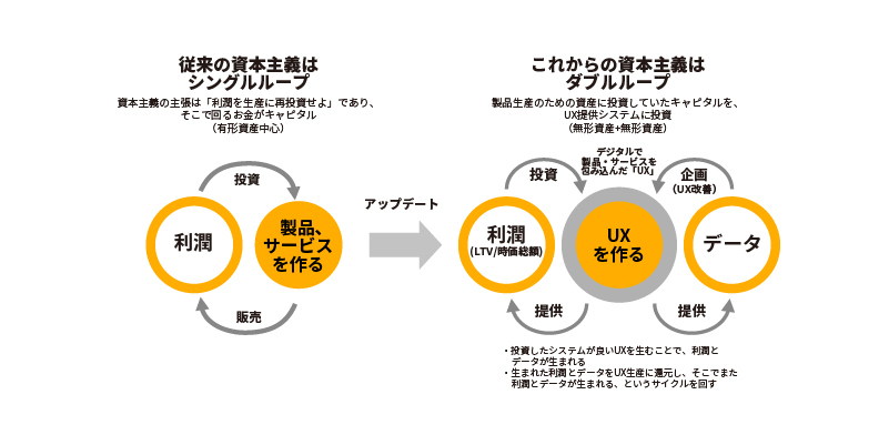 ビフォアデジタルでは基本的にはプロダクトの生産が行われていたので、利潤の再投資先は「プロダクトの生産設備」でした。それに対してアフターデジタルでは、同じく生産設備ではあるのですが、「UXの生産設備」に投資せよ、に変わると思っています。