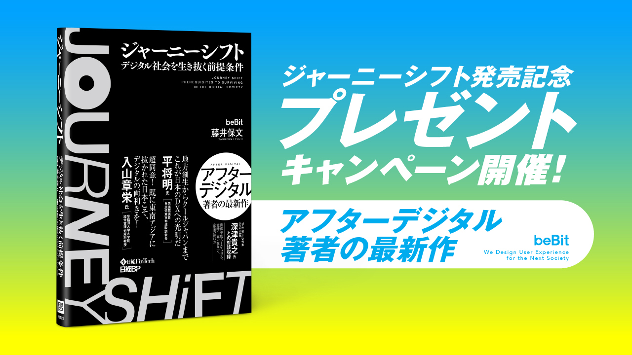 『ジャーニーシフト デジタル社会を生き抜く前提条件』発売を記念し、ビービットから『アフターデジタル』シリーズ4冊セット、もしくは図書カード5,000円分を抽選で10名様にプレゼントいたします!みなさまのご応募、お待ちしております。