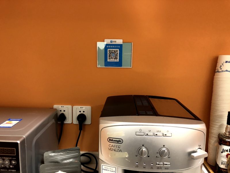 ビービット上海オフィスでは社内でコーヒーが飲めますが、コーヒー豆をあるコンサルタントがまとめて購入し、他の人が飲む時に少額を支払う方法で運用しており、こんな “超マイクロビジネス” でさえQRコードです。はじめは自分で携帯画面のQRコードのキャプチャを印刷しておいていたのですが、しばらくしたら、Alibabaから写真のようなQRコードが家にいきなり届いたそうです…