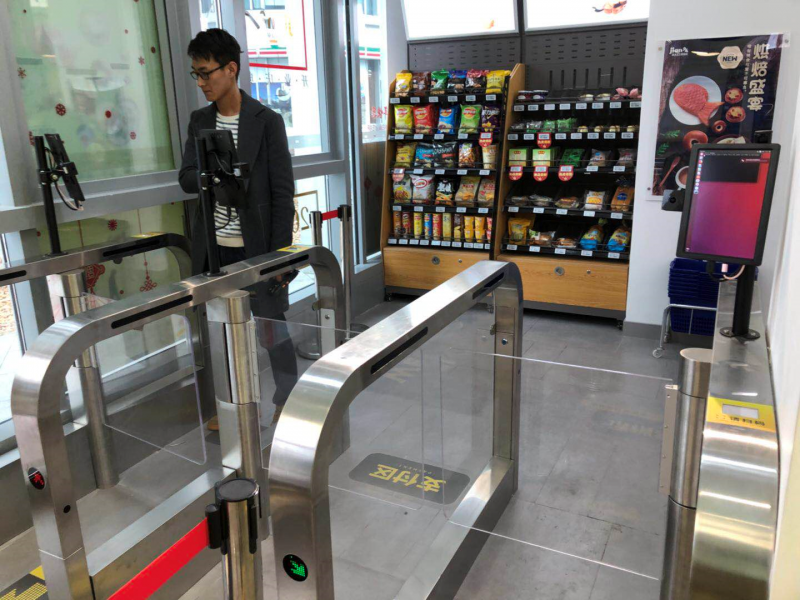 ※無人コンビニJian24の入口。専用アプリのバーコードを読んで入場し、好きなものを取ったら、再度バーコードを出口で読ませて出ていくだけ。あとから購入したものが携帯に通知される。