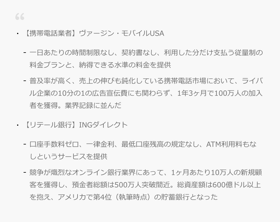 - クロスセルという名のもと、ほとんど使われず対応コストがかからないオプションをセットにし、割増料金を得ている