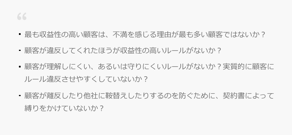 「悪い売上」に自覚的になるための第一歩としては、上記の論文で紹介されている以下の4つの質問を自問自答するとよい。
