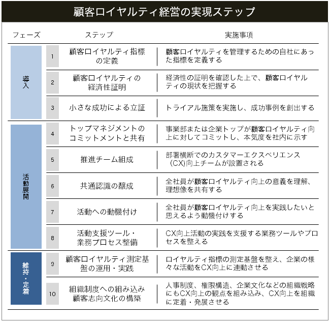 その意味で、導入フェーズにおいて顧客ロイヤルティ向上が売上・利益向上につながることを実データで証明しておくことは、活動を拡大・継続していくにあたって極めて重要なプロセスとなる。