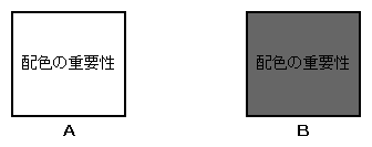 Aの中の文字とBの中の文字の色は同じ色ですが、どちらが読みやすいかは一目瞭然です。AとBの可読性の違いは背景色と文字色とのコントラスト(明暗の差や色彩の対比)の差によって生じます。