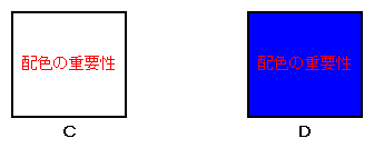 同様に下記のCとDも配色によって、同色の文字でも可読性が変わる例です。