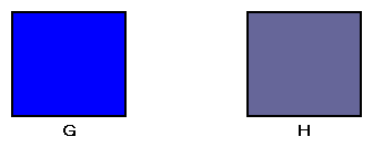 彩度とは一般にあざやかさを表す言葉です。彩度が高いと純粋な色となり彩度が下がるにつれてグレーがかった色になります。下記のGは彩度が高く、Hは彩度が低いということになります。