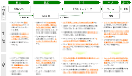 ユーザ行動観察調査を行うことで、仮説・シナリオの妥当性が検証できます。調査では、広告や自社サイト以外での動きや心理変化が把握できるため、広告以外の集客施策を発見できることもあります。