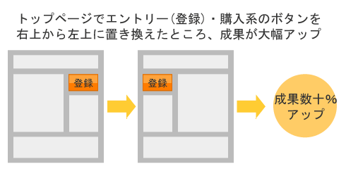 例1)「TOPページでエントリー・購入系のボタンを右上から左上に置き換えただけで、数十%成果が上がった」