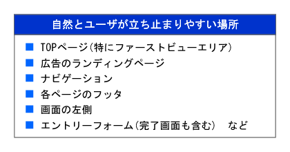 - 2. ユーザがさっと流してしまう場所(あるいは気がつかない場所)