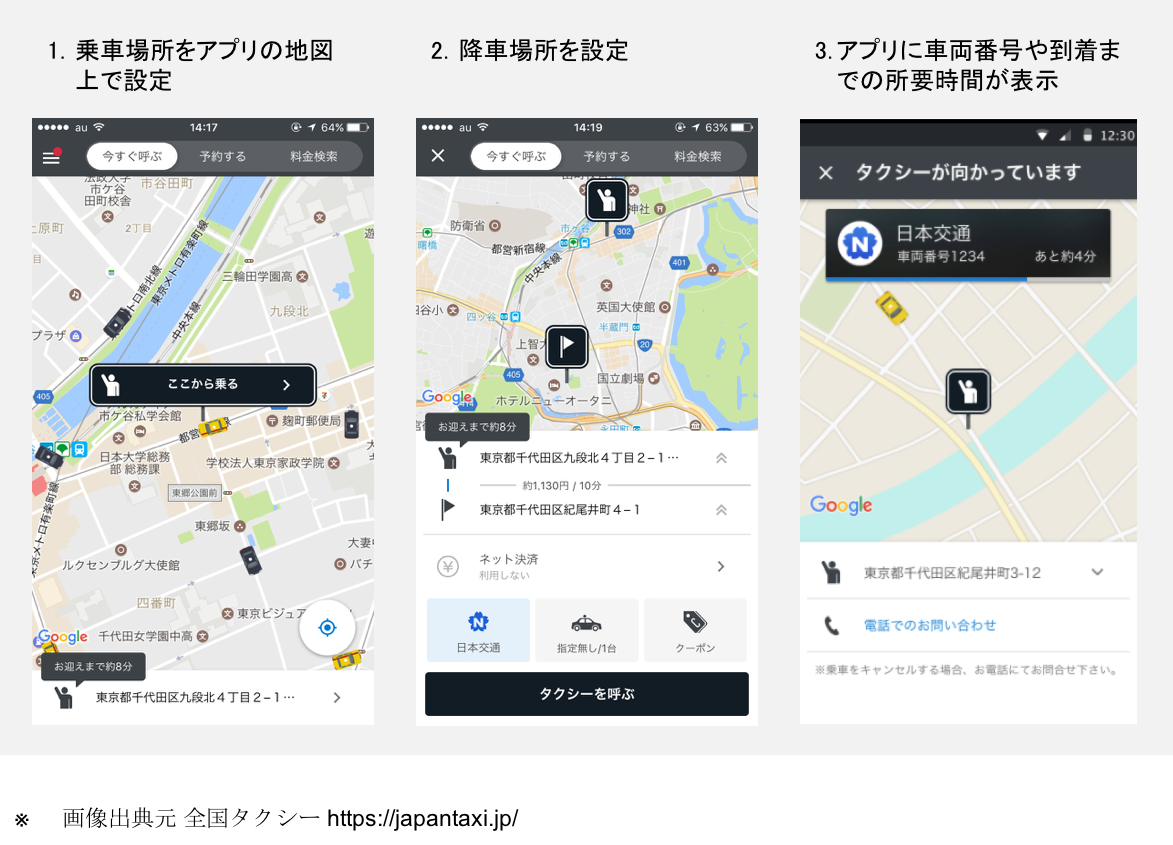 日本の配車アプリをご存知ない方がいらっしゃると思うので、まずは全国タクシーの顧客体験を整理します。
