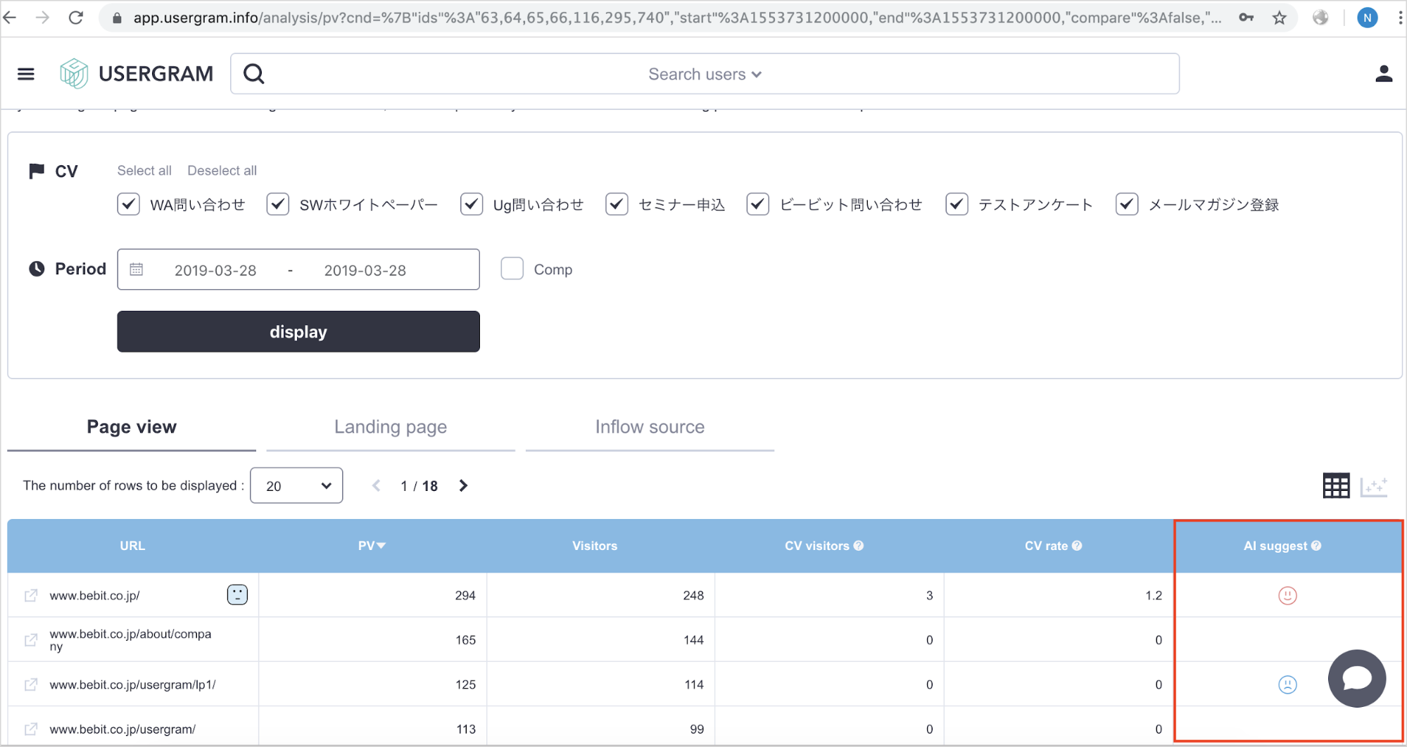 2018年秋にリリースした「AI suggest機能」は、ページや流入元ごとのコンバージョン(CV)への貢献度を機械学習(AI)によって判定し、分かりやすくフェイスアイコンで表示するものですが、今回当該機能のAIアルゴリズムを改善し、「ユーザごとのページ注視度」をモデルに加えたことで、貢献度判定の精度が向上しました。これにより、ユーザの関心をより正確に評価・判断できるようになります。