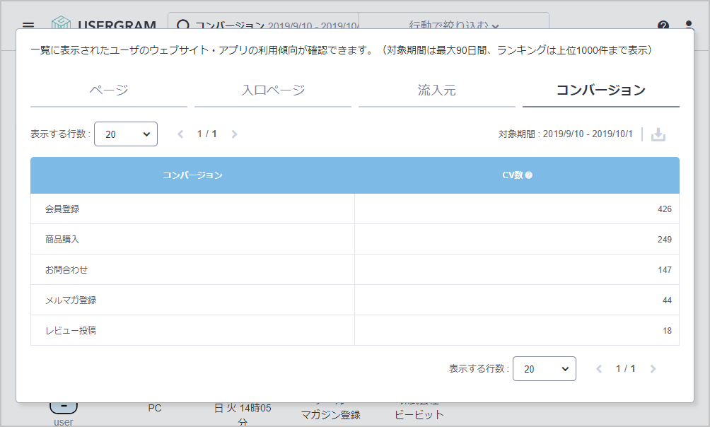 - 特定期間にCVしたユーザ群の、ページ閲覧傾向