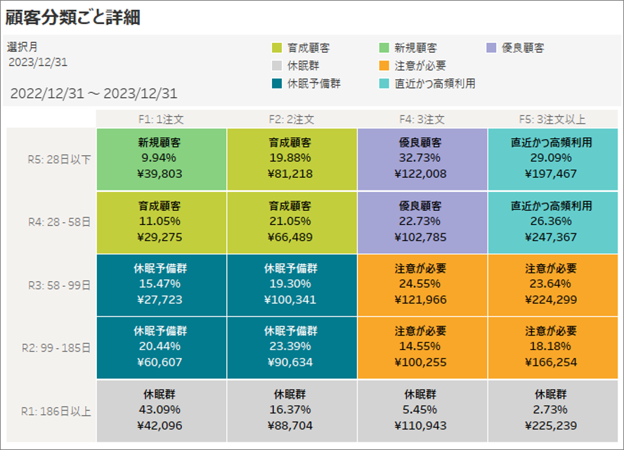 ※「最終購入日(Recency)」「購入頻度(Frequency)」「購入金額(Monetary)」これら3つの指標を用いて顧客をグループに分ける分析手法