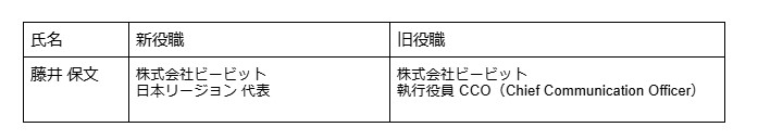 株式会社ビービット(本社:東京都千代田区、代表取締役:遠藤 直紀、以下「ビービット」)は、2025年1月1日付にて国内事業を統括する日本リージョン代表に藤井 保文が就任することを発表します。これにより、国内事業のサービス融合をさらに促進し、企業の自律的・持続的なUX向上を支援していきます。