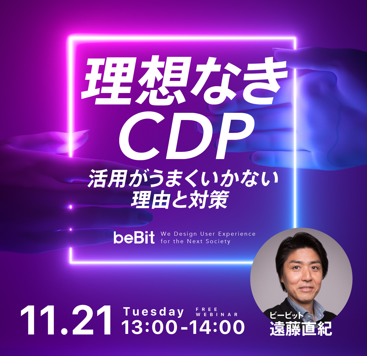 本セミナーではまず、なぜCDP活用がうまくいかないのか、なぜ構築そのものが目的になってしまいがちなのか、その理由を複数の視点から整理します。その上で、企業にも顧客にも価値のあるCDP活用のためのステップを、順を追ってご説明していきます。