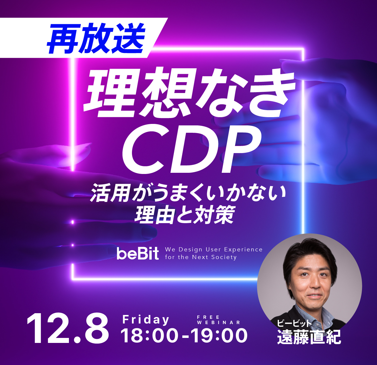 本セミナーではまず、なぜCDP活用がうまくいかないのか、なぜ構築そのものが目的になってしまいがちなのか、その理由を複数の視点から整理します。その上で、企業にも顧客にも価値のあるCDP活用のためのステップを、順を追ってご説明していきます。