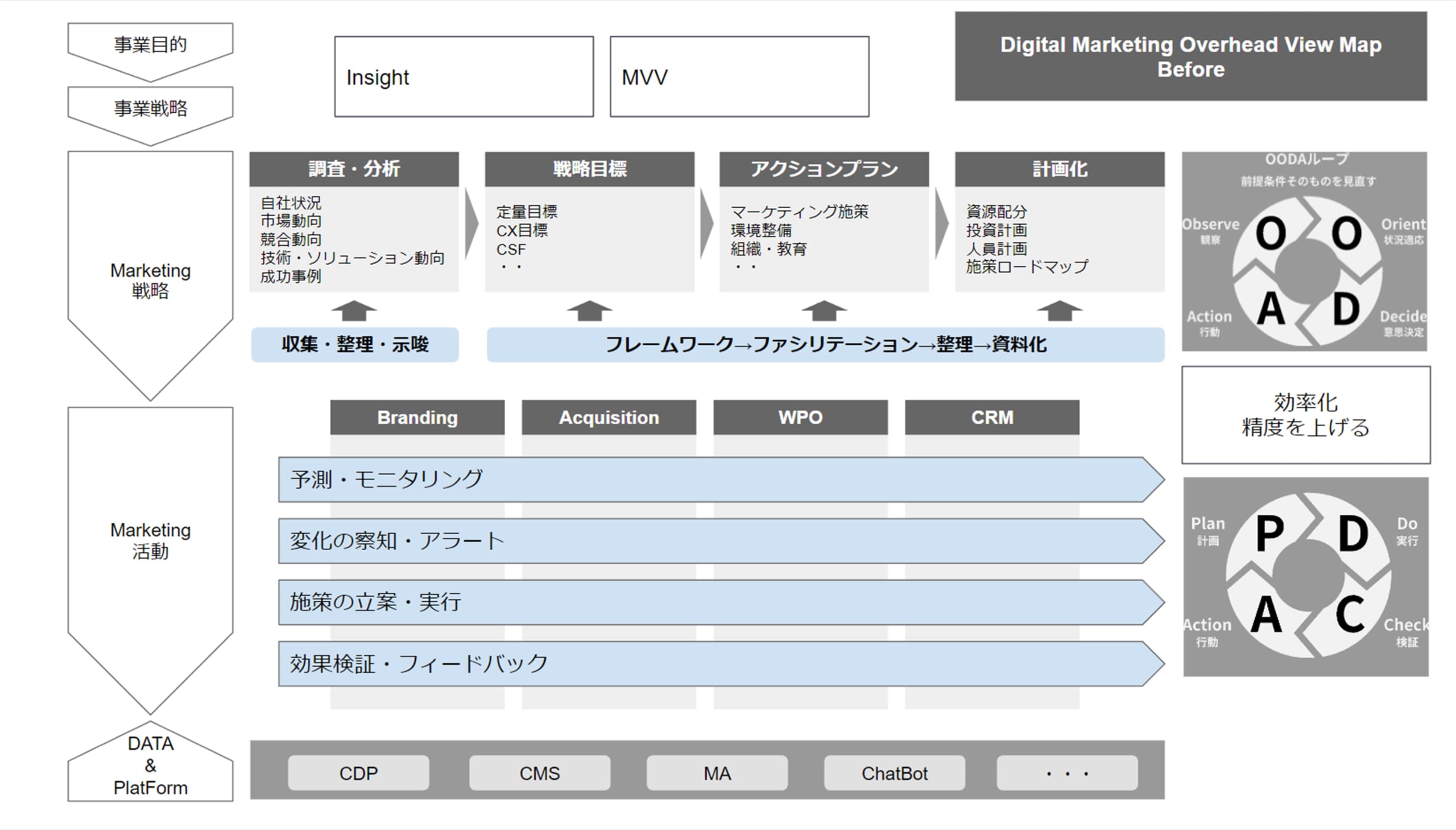 なお、以下のような「事業とマーケの全体外観図」を踏まえて、自身や組織の業務を見つめ直し、示唆を得るような会になります。