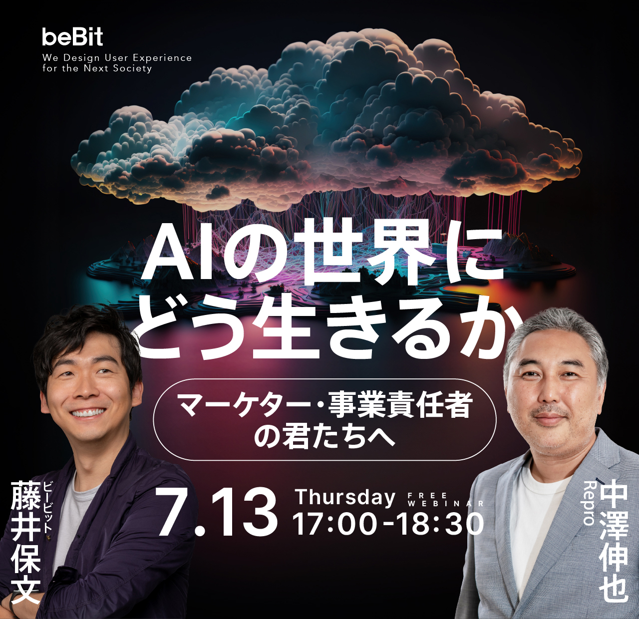 生成AI時代の仕事人としての生き方をテーマに、Repro CBDO中澤伸也、アフターデジタルのbeBit CCO藤井保文が、緊急対談を行います。