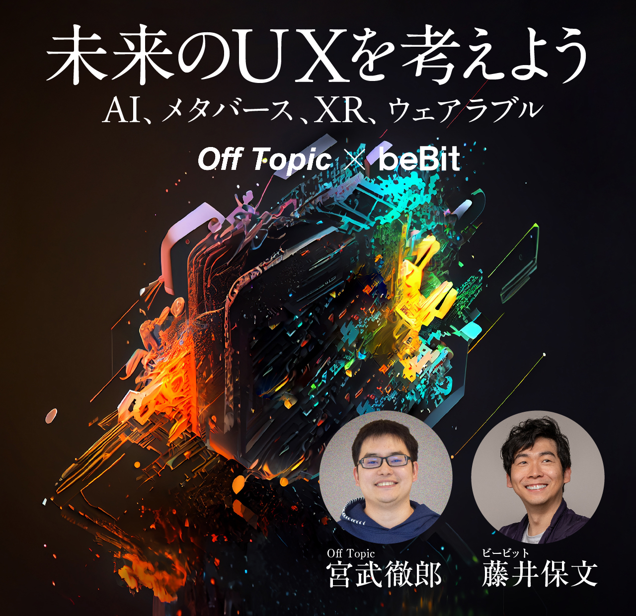 ビービット藤井もずっと聴き続けている人気ポッドキャスト"Off Topic"を運営し、いつも未来を届けてくれる宮武さんに、藤井保文がAI、メタバース、XR、ウェアラブルなど、起こり得る未来をぶつけて議論します。