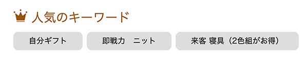 そこでトップページに表示している「人気のキーワード」という欄で「来客 寝具2色組がお得」というキーワードを出して、気づいてもらいやすいようにしました。