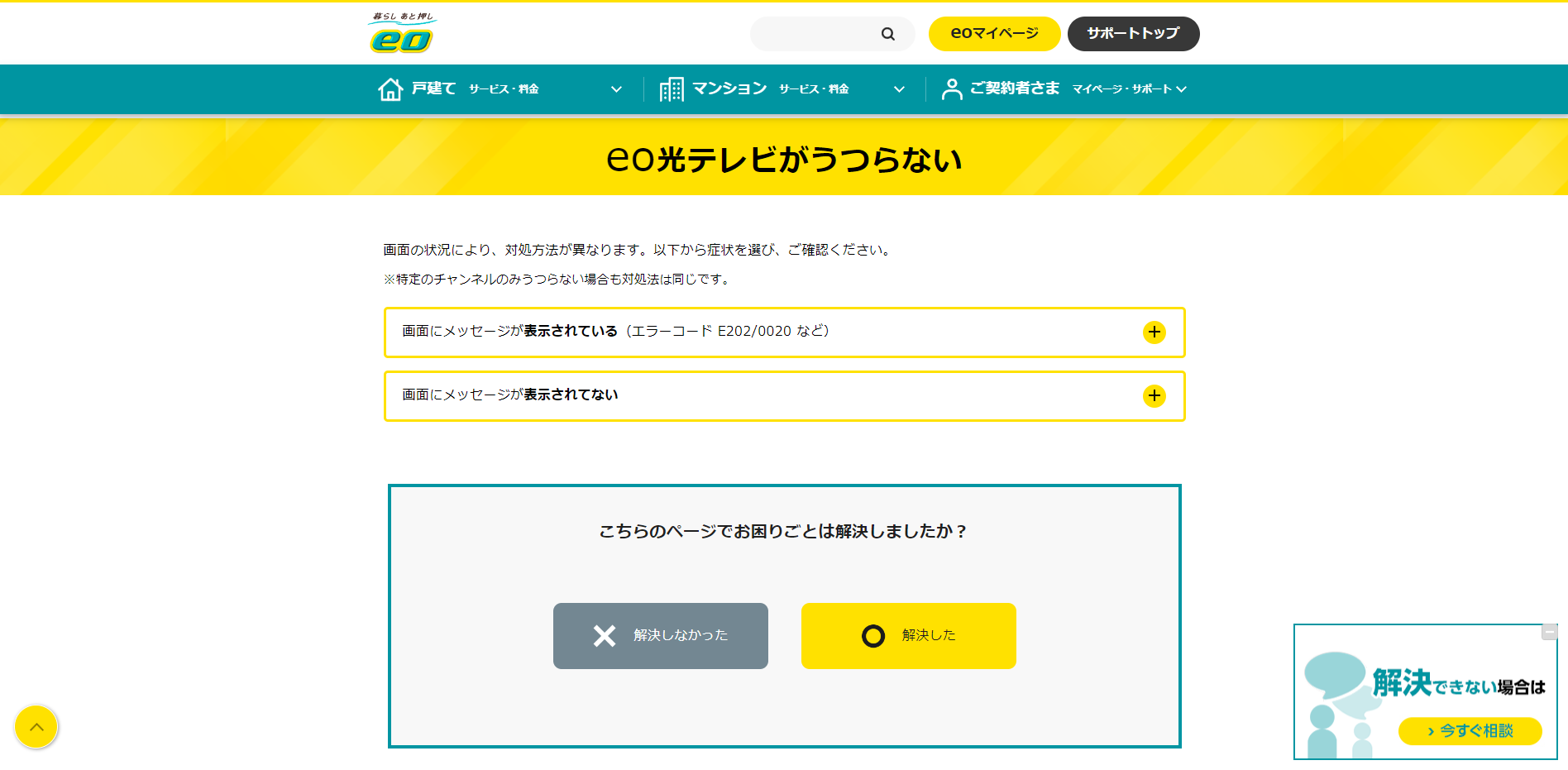 訪問ユーザに「こちらのページでお困りごとは解決しましたか?」と聞き、解決率を測っている。