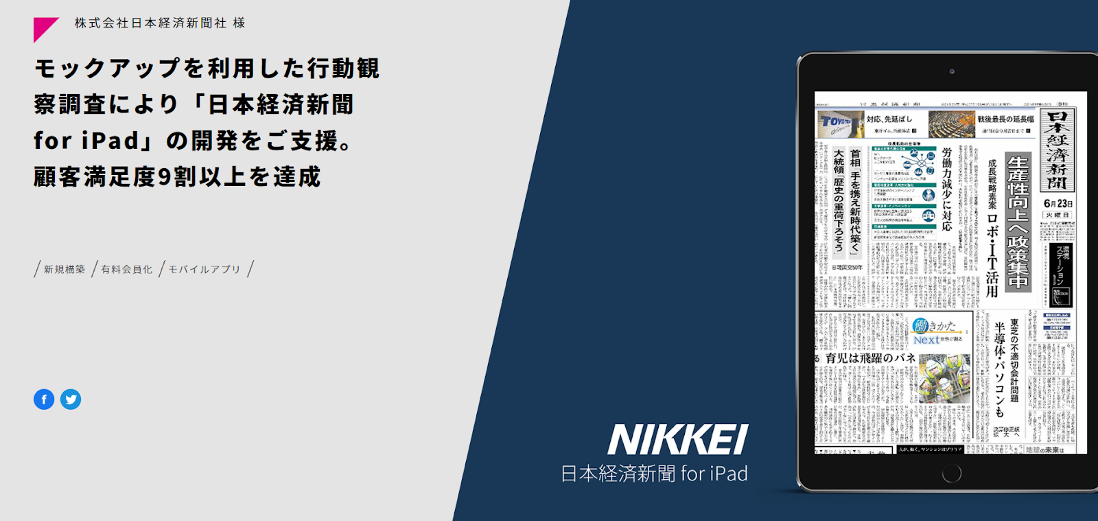 ▼モックアップを利用した行動観察調査により「日本経済新聞 for iPad」の開発をご支援。顧客満足度9割以上を達成