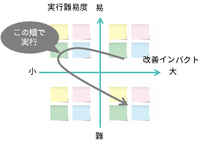 改善インパクトと実行難易度の2軸で整理すると、優先度がつきやすくおすすめです。