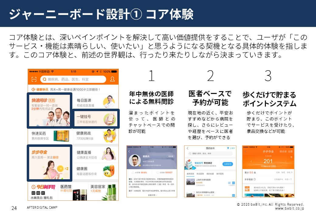 たとえば、複数の病院を比較して診療予約ができるサービスをコア体験に置くなら、「健康情報メディア」「歩くとポイントがもらえる」「健康グッズや美容品の購入」などを高頻度接点として設定できます。得られたポイントを使うとコア体験がより便利になる、安くなるなど、連携して接点頻度を高めていくことも可能です。