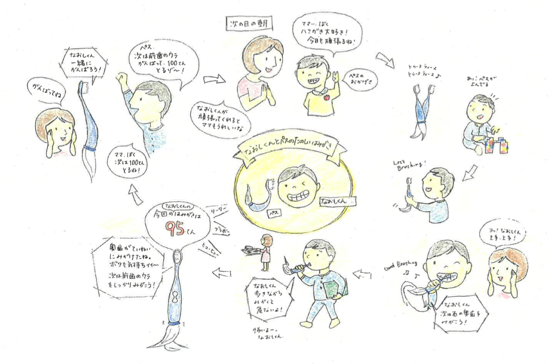 コンセプトボードに描かれた世界の実現に向けて、お母さんの不安とイライラを和らげ、子どもが歯みがきに前向きになる体験デザインのプロジェクトが始まりました。