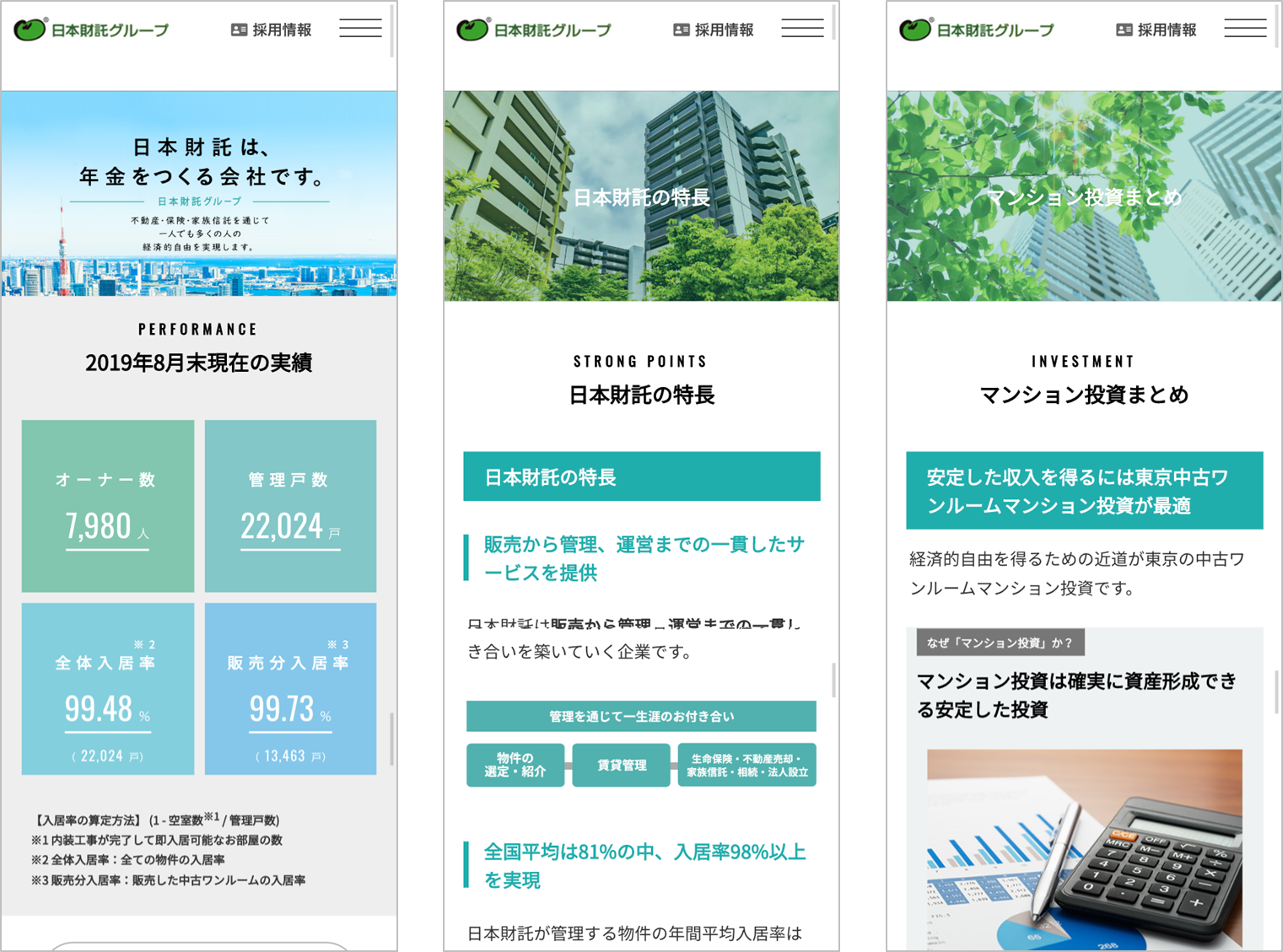 日本財託様は、不動産投資業界で「中古ワンルーム」領域の実績日本一、創業からの年数もトップクラスに長い企業です。高額で失敗したくない買い物だからこそ疑心暗鬼になっているユーザに対して、明確なスタンスとそれを支える理論・数値的根拠をアピールできれば不信感を信頼感に変えられる。これが、サイトリニューアルの大きな指針になりました。